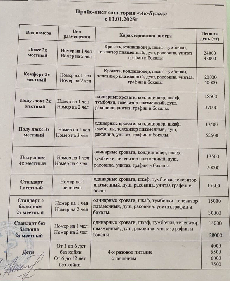 Люкс сынып. Кісі басына тәулігіне 40 000 тг бастап