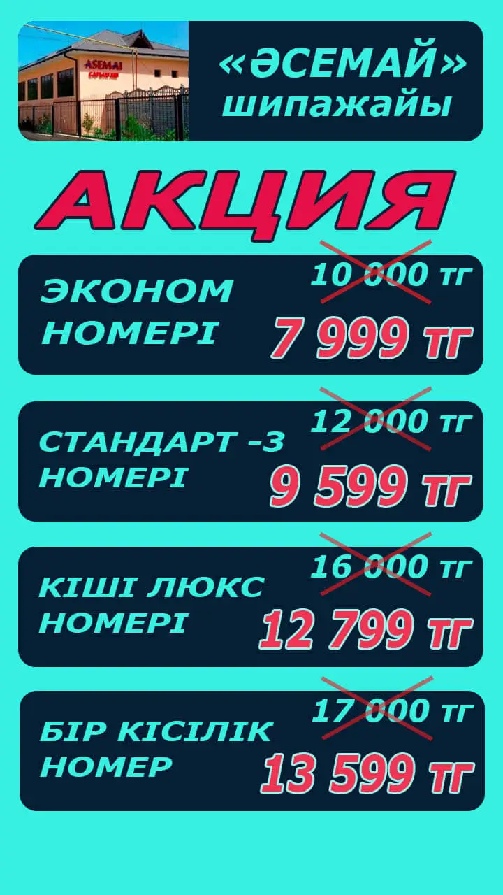 Эконом сынып. Кісі басына тәулігіне 8490 тг бастап