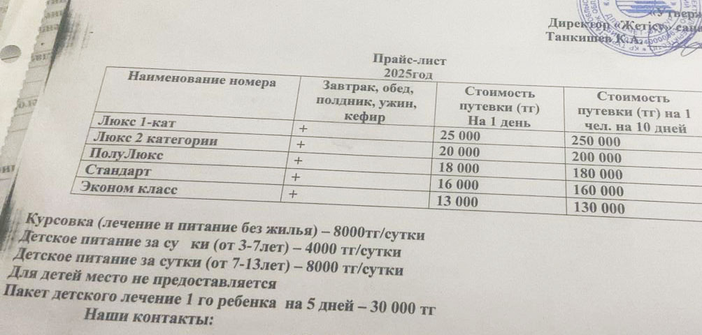 Люкс сынып. Кісі басына тәулігіне 40 000 тг бастап